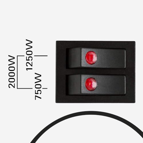 - Puissant et économe en énergie : 2 interrupteurs pour régler la puissance sur 3 niveaux : 750 W, 1250 W et 2000 W.