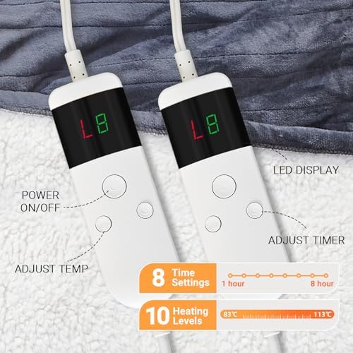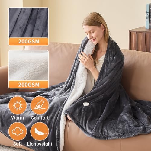 Couverture chauffante en flanelle douce avec 10 niveaux de chauffage et arrêt automatique