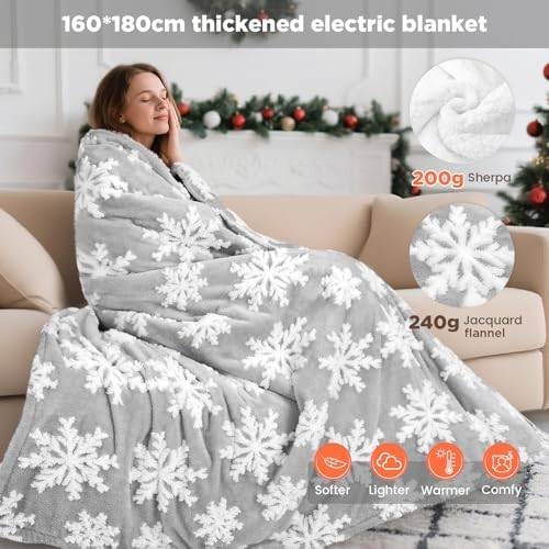 - Plus grande et plus épaisse : Couverture chauffante 160x180cm, idéale pour deux personnes, offrant une sensation de nuage grâce à son design double face en flanelle et polaire.