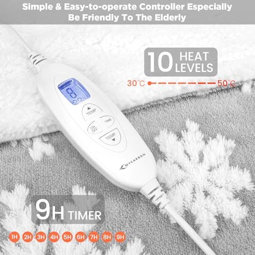- 10 réglages de température : Personnalisez la chaleur avec 10 niveaux de 30℃ à 48℃ et minuterie de 1h à 9h pour un arrêt automatique.