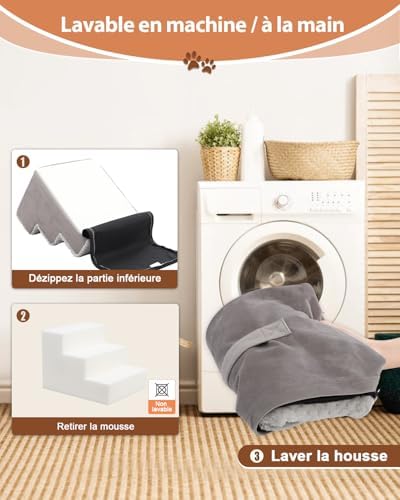 Escalier pour chien à 4 marches avec stabilité et facilité de nettoyage