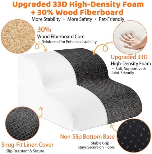 Pour aider mon vieux labrador à monter sur le canapé, j'ai troqué mes coussins empilés pour cet escalier. Il a trois marches et, comparé aux coussins, c'est bien plus stable et sûr. Chaque montée est devenue un jeu d'enfant pour lui.
