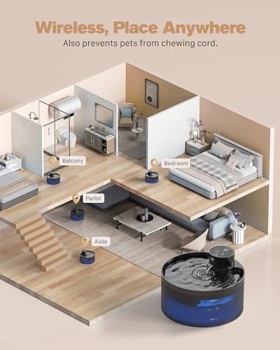 - Fontaine à eau sans fil pour chat, élimine les câbles gênants et dangereux.